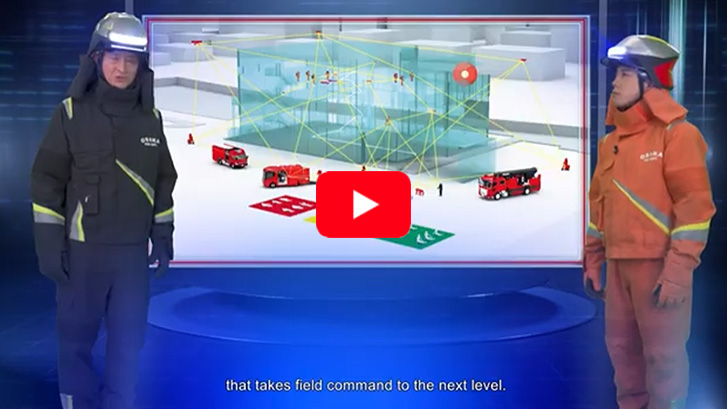 災害時における要救助者の迅速な救出と火災の早期鎮圧を目指して、指揮本部で必要な火災現場の情報をリアルタイムで収集し、現場の指揮活動を支援するシステムです。